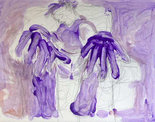 I curated 16 paintings from the 100+ I worked on in this period and I call this chapter: “120 Days of Healing". I started with a pen secured to a toilet paper roll since my hand could not curl around a brush. I love the face of this man.