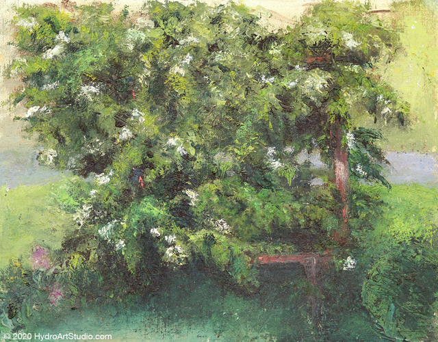 It was my first real effort to dedicate time. This hydrangea is in oil from Heidi’s yard – our host. Heidi Leighton has taught me so much about capturing the space in between.